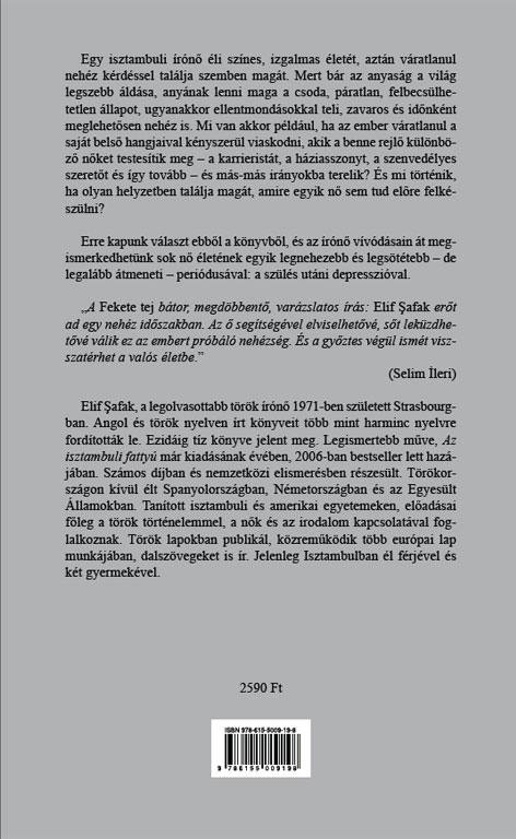 Siyah Süt kadınlığın, kadınların hayatının kasvetli ve karanlık ama son tahlilde geçici bir dönemiyle ilgili. Birdenbire gelen ve geldiği gibi hızla dalgalar halinde çekile çekile giden bir haletiruhiye burada incelenen. Bu haliyle elinizde tuttuğunuz kitap bir nevi tanıklık. Otobiyografik bir roman.